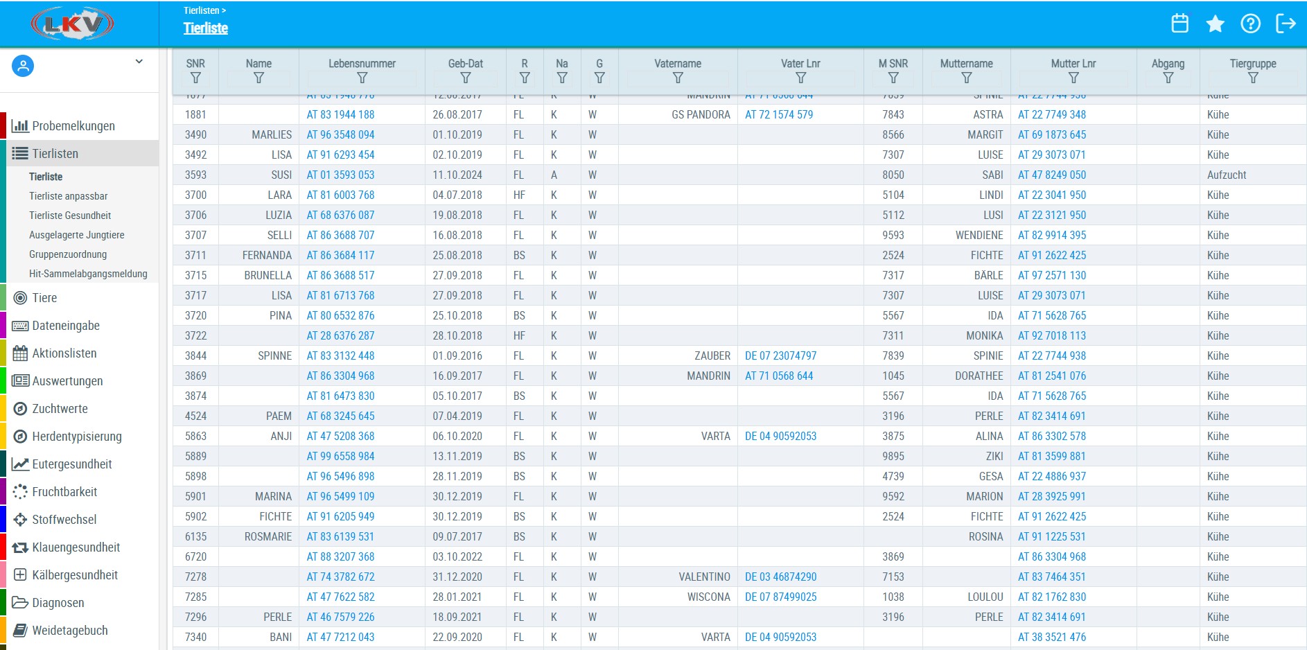 Unter Tierliste anpassbar stehen neue Merkmale hinsichtlich Mutterleistung und genetische Besonderheiten zur Auswahl.
