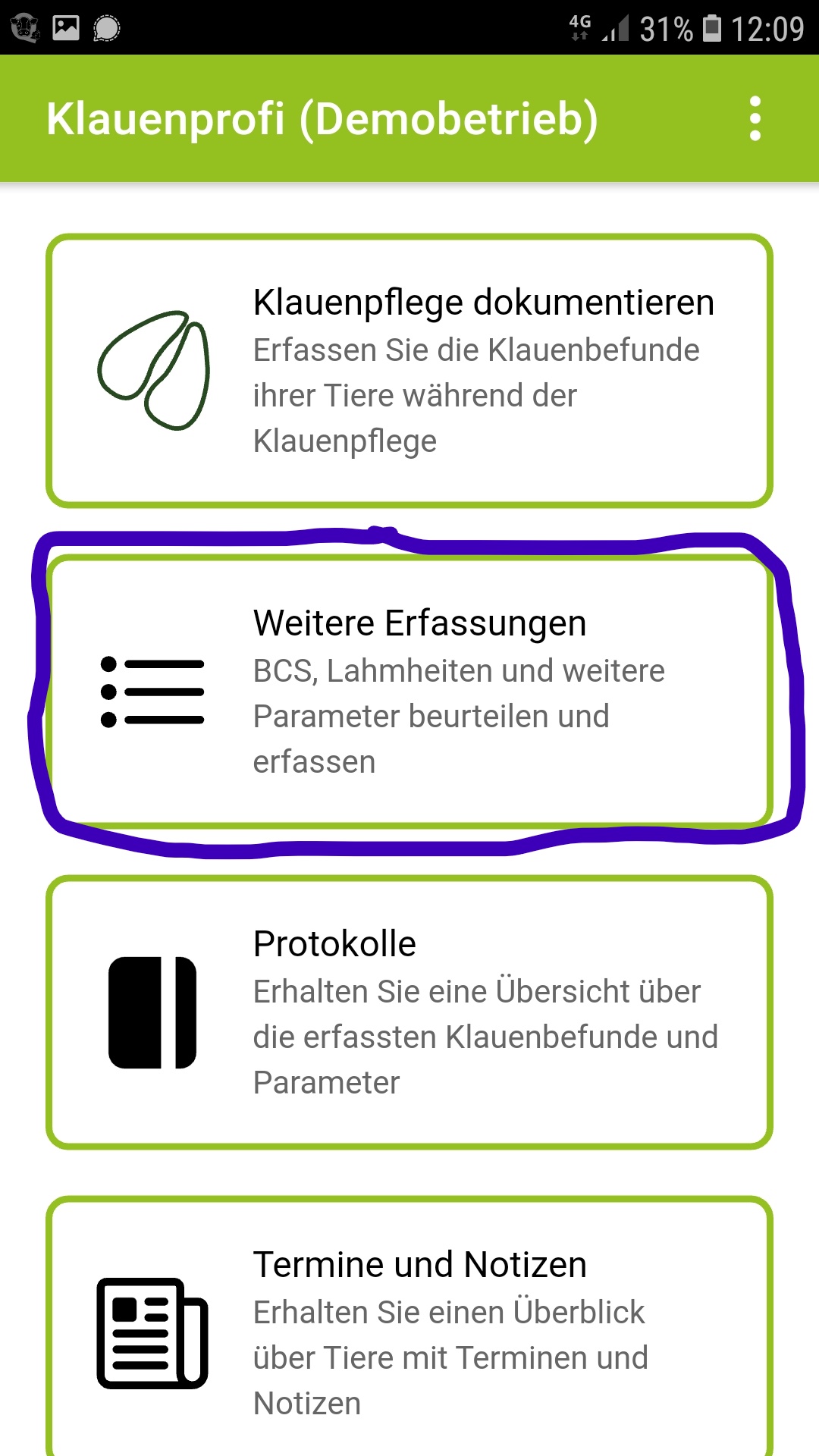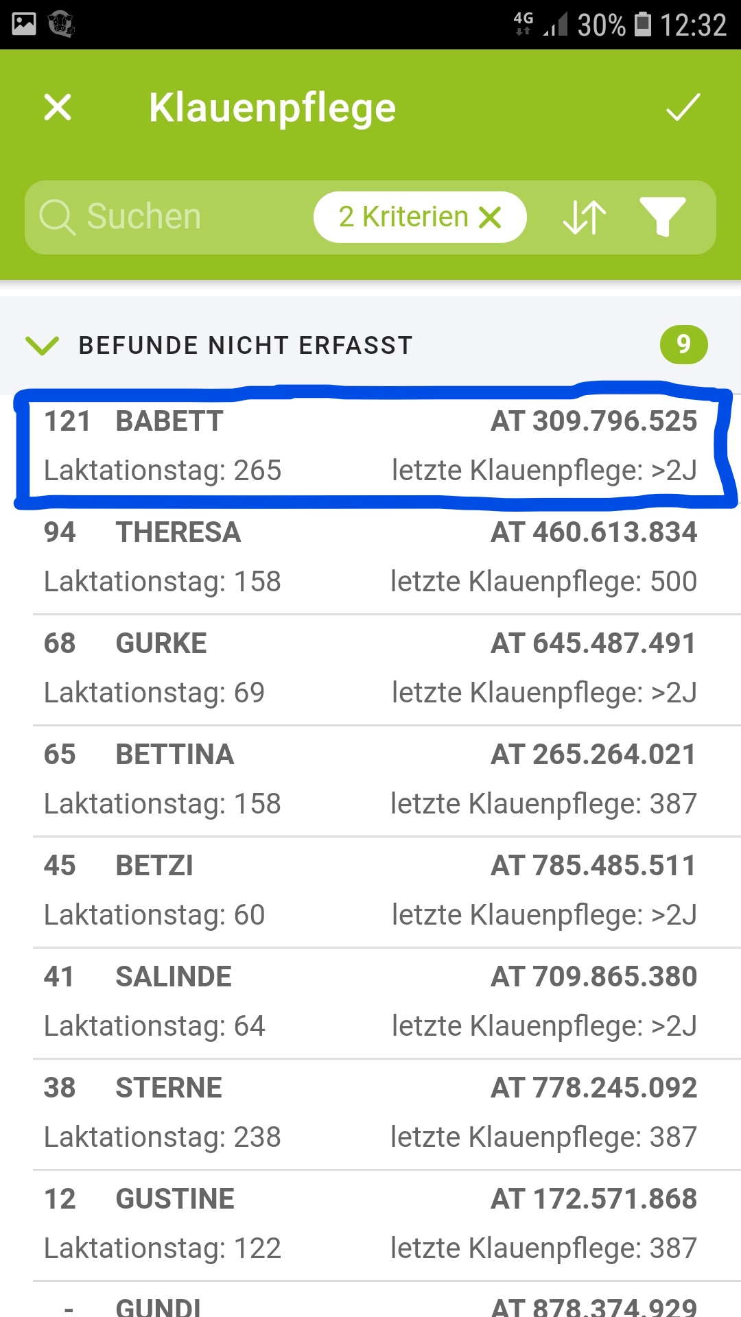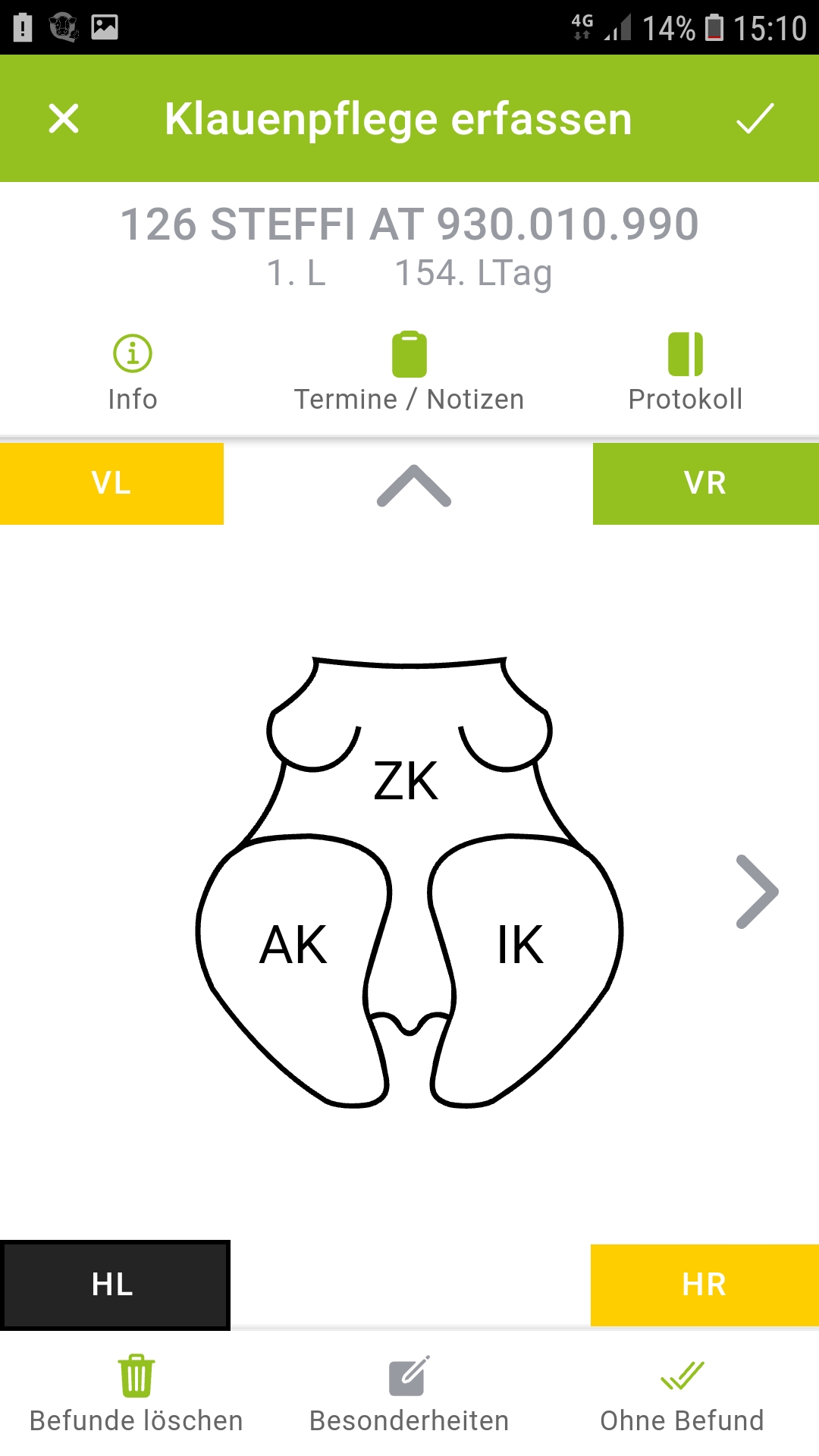 schnelle Erfassung der durchgeführten Klauenpflege