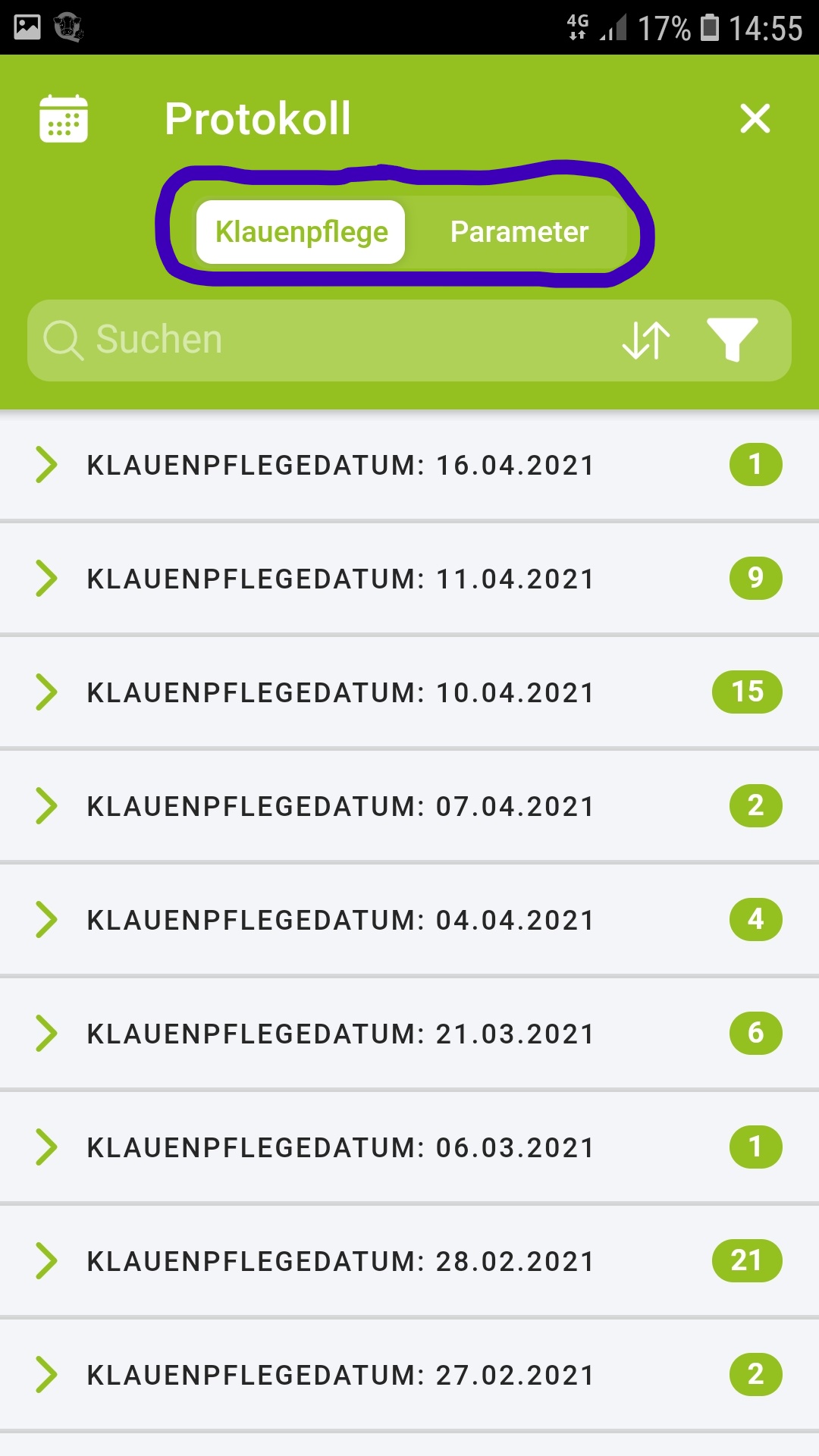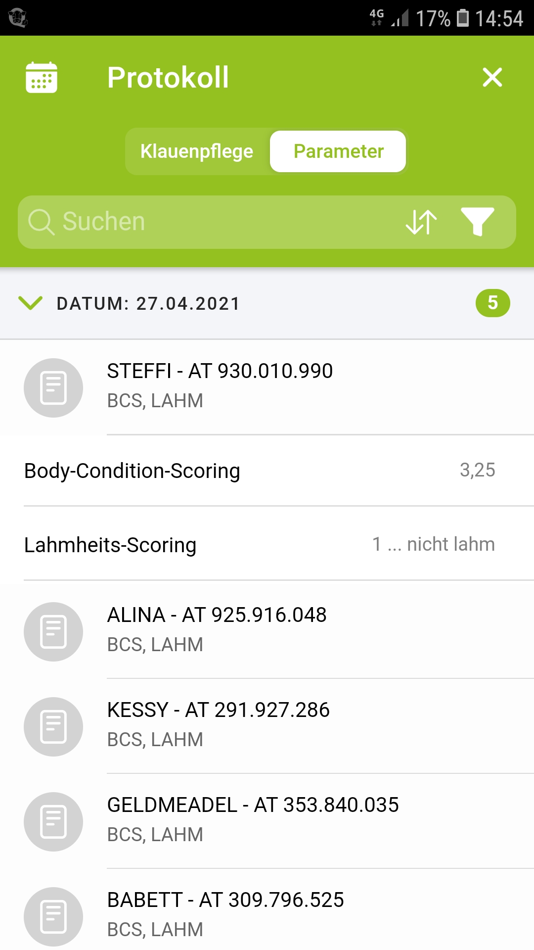 Führung eines Klauenpflege- und Parameter Protokolls
