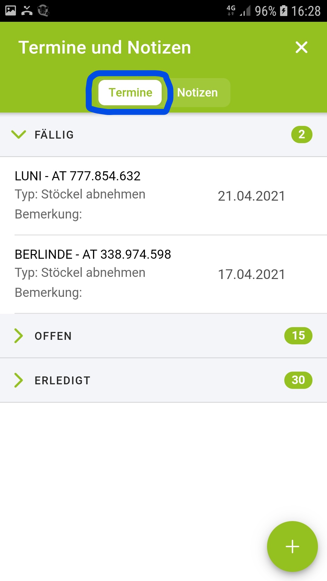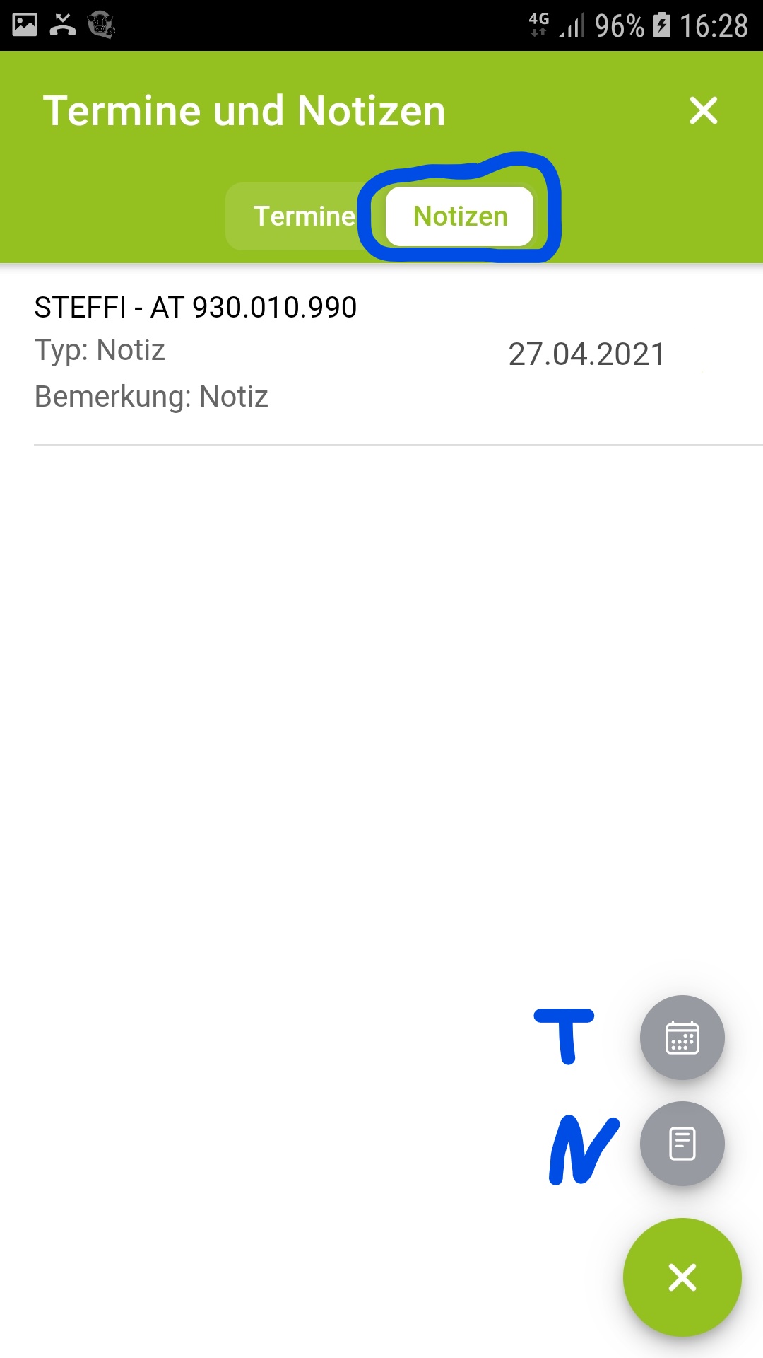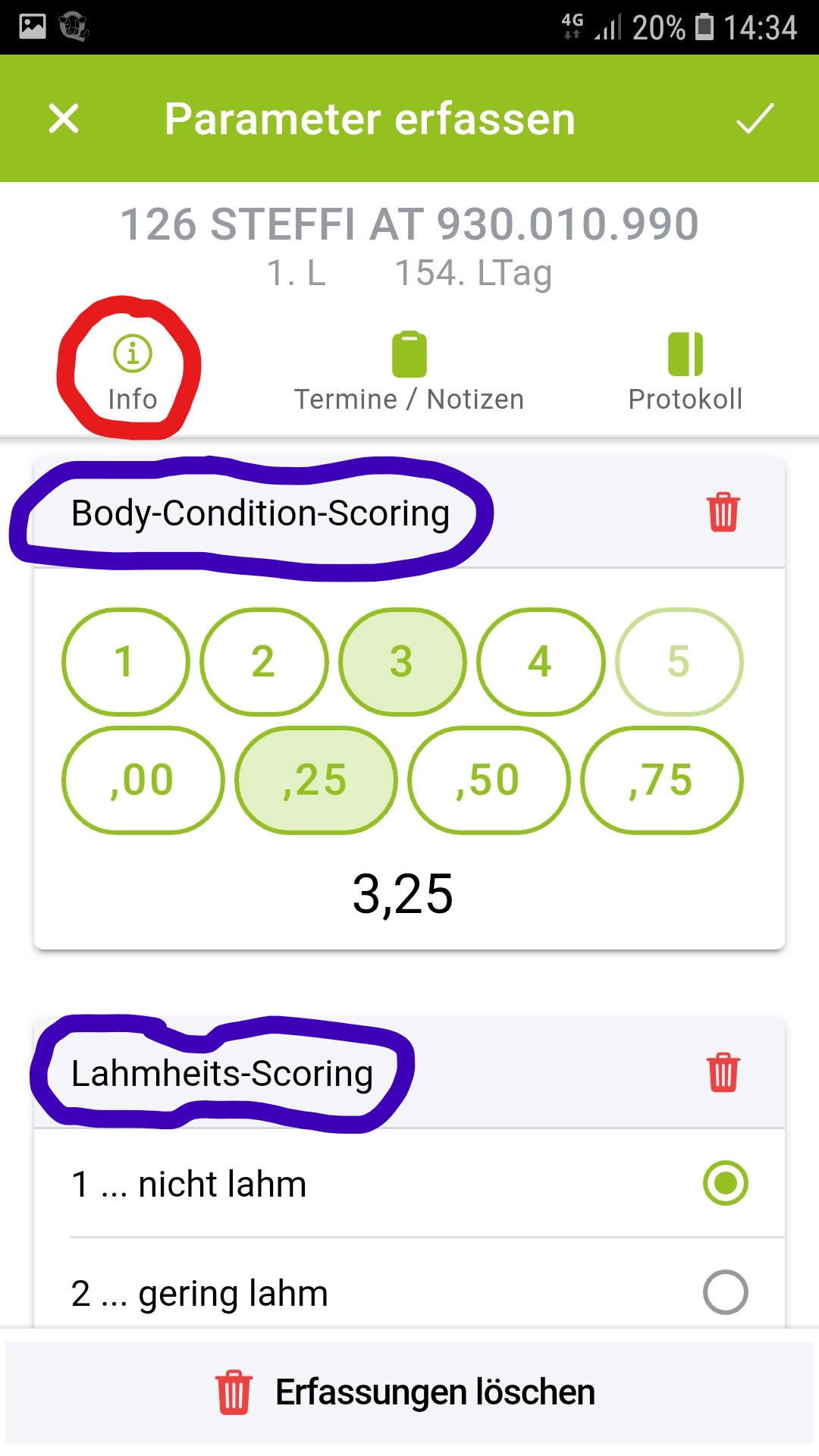 Erfassung von tierbezogenen Notizen