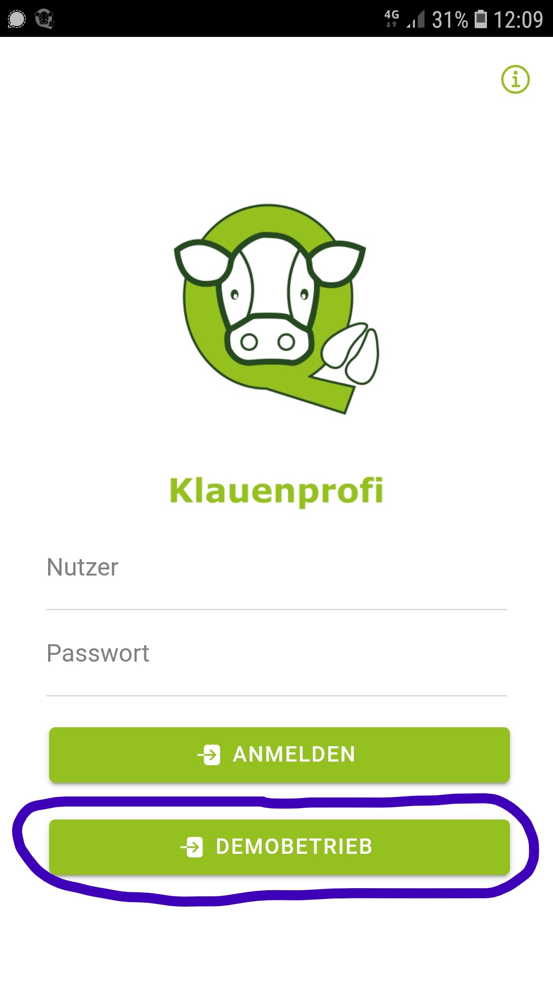 Anmeldefenster der App