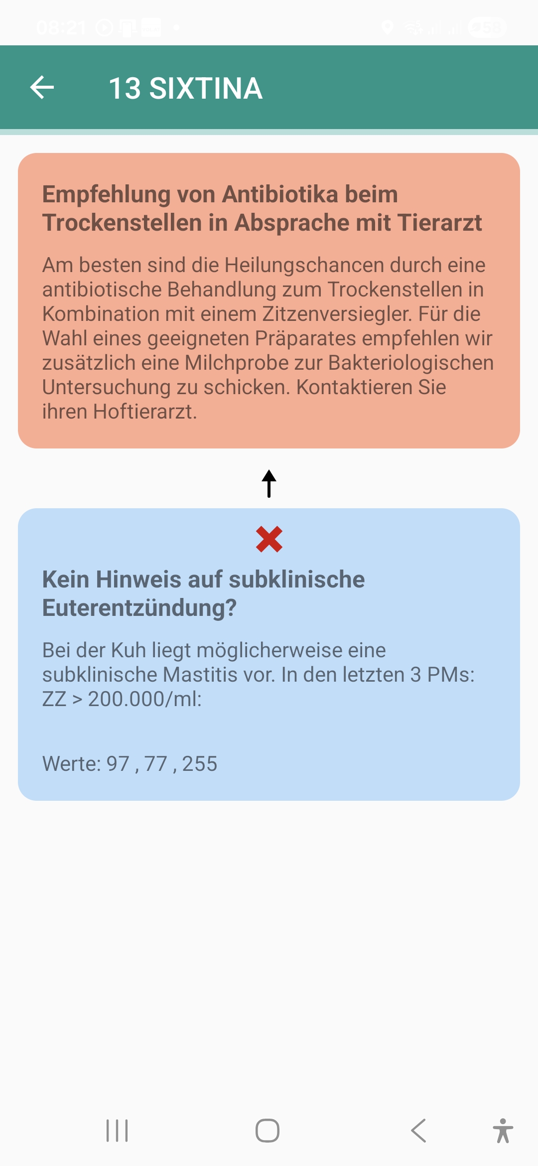 In der Übericht zum Selektiven Trockenstellen wird übersichtlich dargestellt, ob eine Verwendung von Antibiotika zum Trockenstellen empfohlen wird. Durch die Selektion eines Tieres wird ein Entscheidungsbaum dargestellt. Dieses Modul steht jedoch nur Betrieben zur Verfügung, die am Programm teilnehmen und bei denen eine Mitgliedschft besteht.